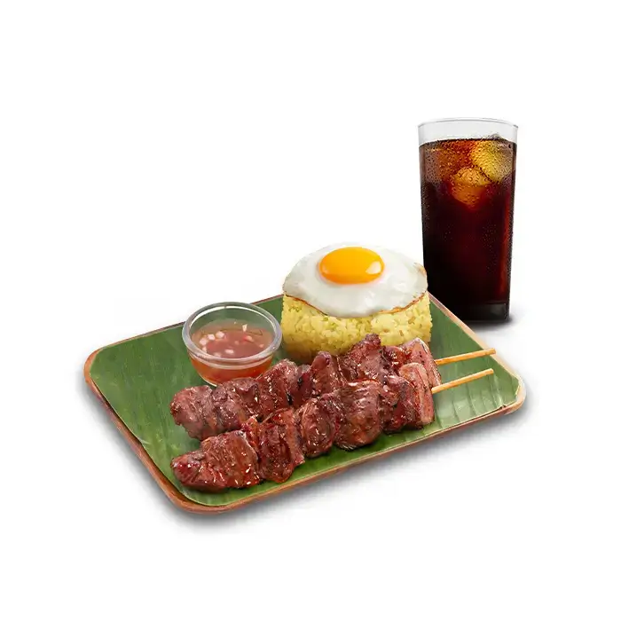 | Breakfast Pork BBQ with drink | 2-pc Pork BBQ with Garlic Rice, egg and drink | ₱ 184 |